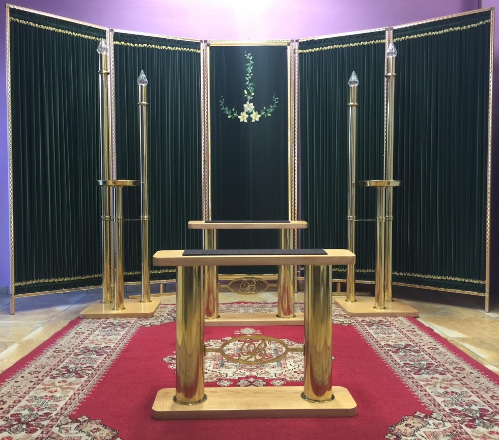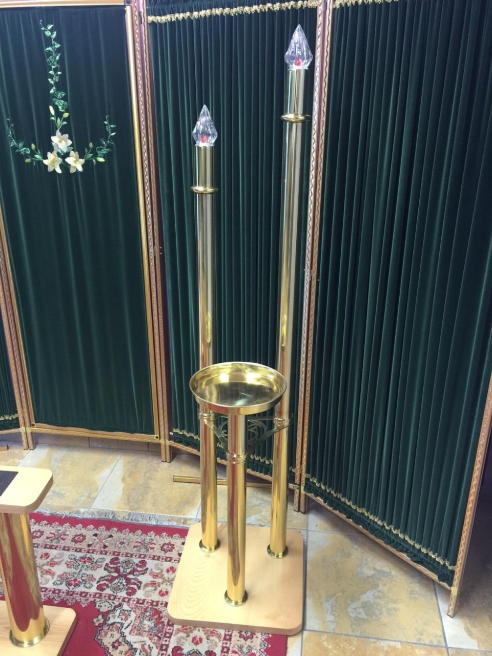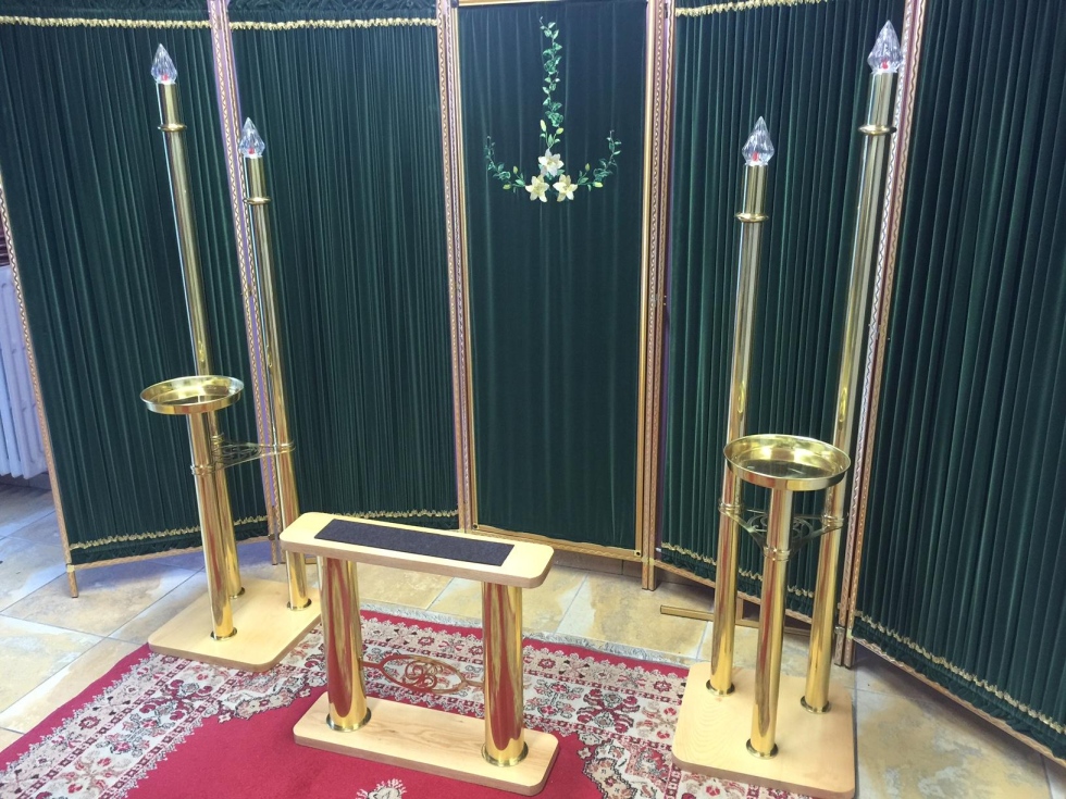 Parure camera ardente basi in rovere ed elementi in ottone