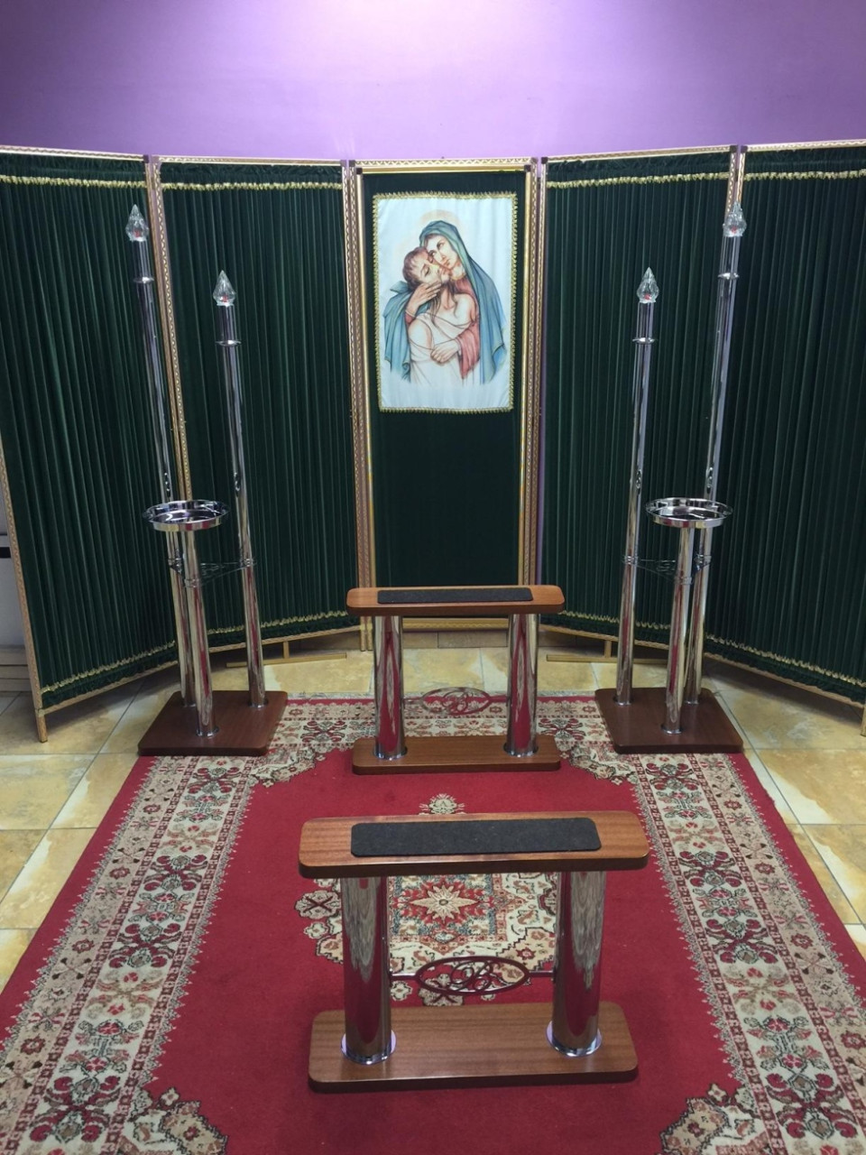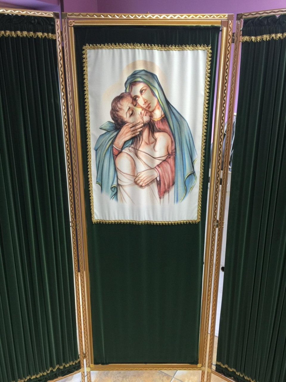 Fondali a tema religioso e laico, drappi e copri cofani in velluto